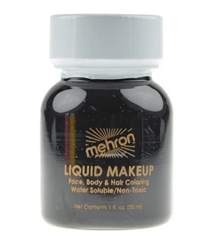 Liquid Makeup 1 Oz Black. A thick, rich water based liquid which is widely acknowledged as the best product of its kind on the market. Excellent coverage and soap and water removal make this the perfect choice.