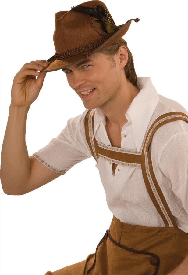 Octoberfest Hat Brown. Great accessory for German or Swiss costumes. One size fits most. Brown. Made of a polyester/felt blend.