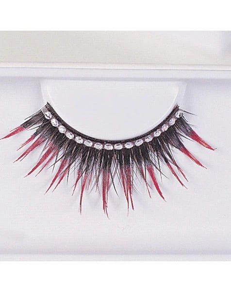Eyelashes Black with Red Tips and Rhinestones. Adhesive included with each set of lashes.