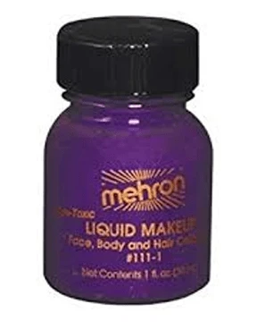 Liquid Makeup 1 Oz Purple. A thick, rich water based liquid which is widely acknowledged as the best product of its kind on the market. Excellent coverage and soap and water removal make this the perfect choice.
