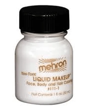 Liquid Makeup 1 Oz White. A thick, rich water based liquid which is widely acknowledged as the best product of its kind on the market. Excellent coverage and soap and water removal make this the perfect choice.