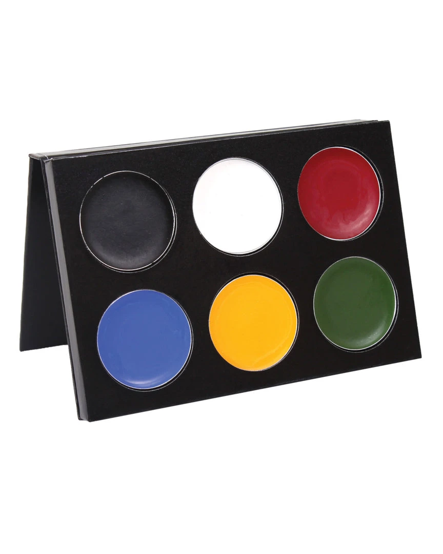 Mask Color Palette 6 Basic. Mehron’s Mask Cover is the first choice of professional special effects artists for use on latex, rubber, silicone and foam prosthetics, since it contains castor oil-based cream formulas that will not break down synthetic prosthetics that are petrolatum or mineral oil-based. Product and color selections were developed in cooperation with Academy Award-winning makeup artist Dick Smith! Use for coloring latex and rubber prosthetics such as bald caps, ears, noses and other special effects. Apply with fingertips, sponge or brush and set with Colorset Powder. Remove with makeup remover or cold cream followed with soap and water. Do not use red, yellow or orange in the area of the eye. Do not use blue or green on the lips. If irritation occurs, discontinue use. Not recommended for use on children under 3 years old.