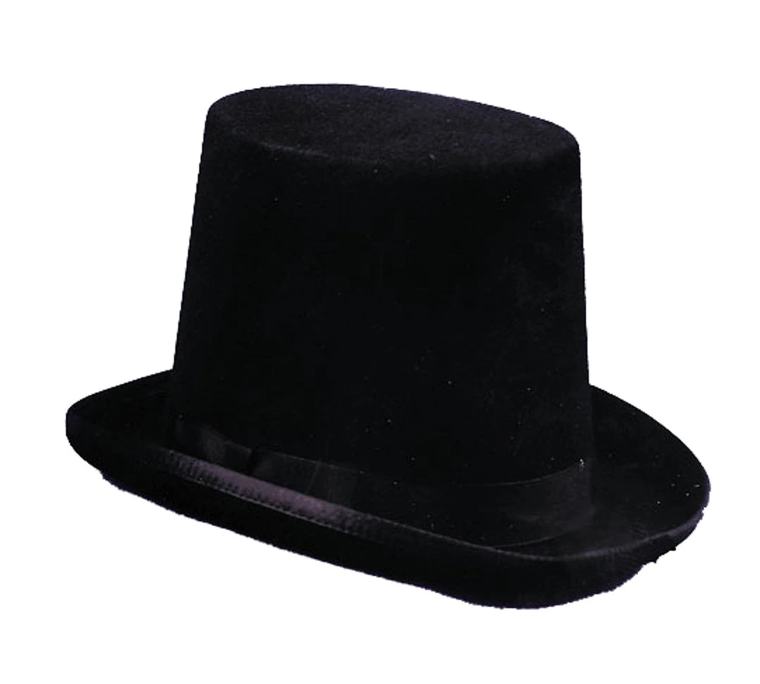 In the Lincoln tradition is this fine quality wool stovepipe hat with cloth band. Brim 2 inches, height 6 1/2 inches.