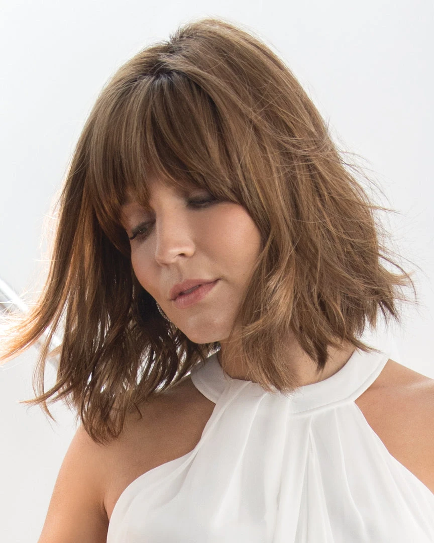 Alexi from Noriko is a short-length synthetic wig. This wavy ready-to-wear wig is a textured bob with bangs to fame the face creating a perfect modern fit. Alexi is lace front machine made that will give you a natural look. Alexi cap construction has adjustable tabs in the back nape area to allow a more comfortable fit. The result is a comfortable fit with a natural look that is both fashionable and easy to wear.