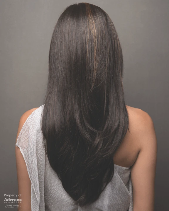 Angelica PM by Noriko has long, textured layers that fall to mid-back in this full, “flowy” design. Angelica PM wigs feature a partial monofilament (PM) cap construction. The 100% hand-tied section allows for added multi-directional styling while creating the illusion of natural hair growth. Additional cap construction features include machine wefted sides, a flower net top with two way stretch from front to back, and a soft flower net nape and ear tabs with adjustable band that contours to the shape of the head. Angelicas‘s partial monofilament (PM) cap construction provides a cooler, all day wearing comfort.