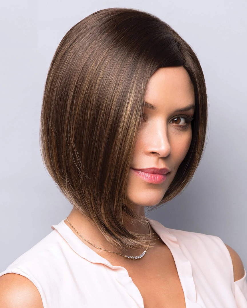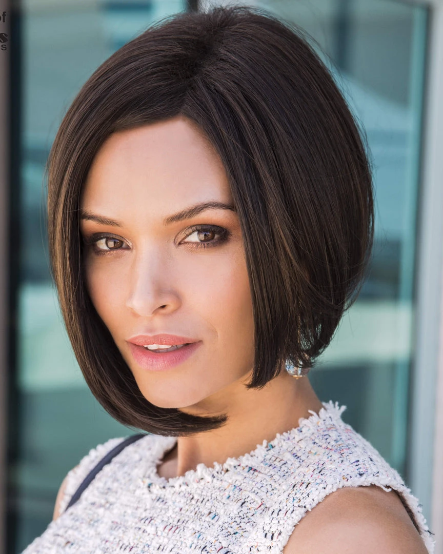 Faith from our Noriko is a short-length synthetic wig. This straight ready-to-wear wig is a timeless asymmetrical bob with face-framing layers. This trendy wig is lace front and lace part. Its lace front will give you a natural look with the lace part cap. Faith cap construction has adjustable tabs in the back nape area to allow a more comfortable fit. The result is a comfortable fit with a natural look that is both fashionable and easy to wear.