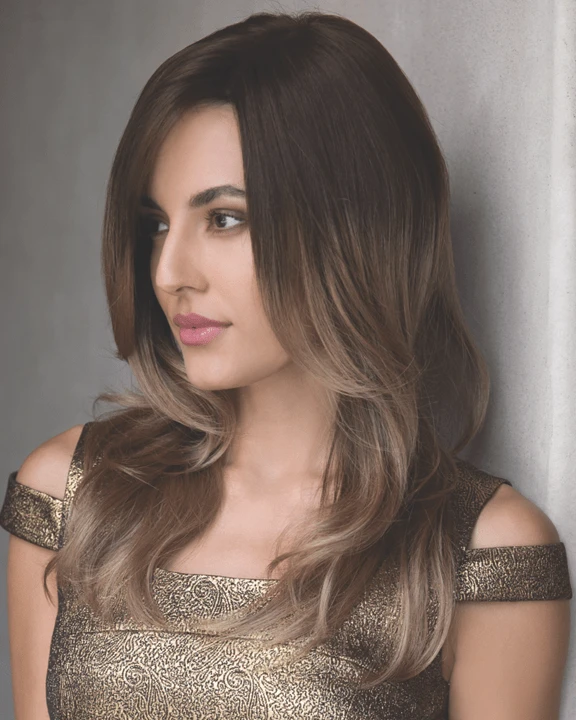 Janelle PM by Noriko is a long lush layered style with a hint of waves at the ends that falls below the shoulders. Noriko’s Janelle PM wigs feature a partial monofilament (PM) cap construction. The 100% hand-tied section allows for added multi-directional styling while creating the illusion of natural hair growth. Additional cap construction features include machine wefted sides, a flower net top with two way stretch from front to back, and a soft flower net nape and ear tabs with adjustable band that contours to the shape of the head. Janelle’s partial monofilament (PM) cap construction provides a cooler, all day wearing comfort.