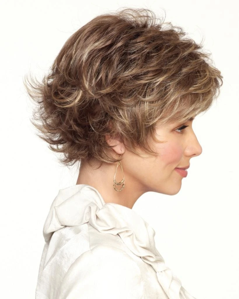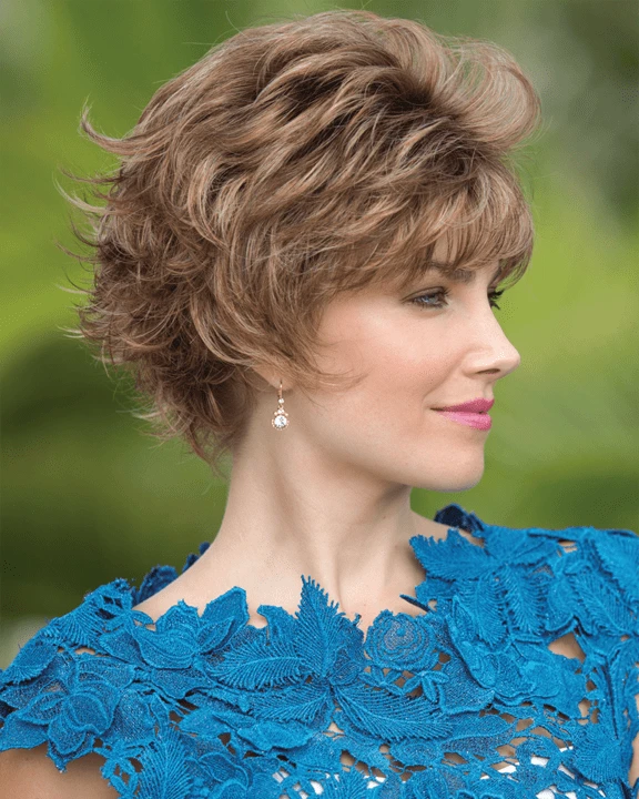 Mixed layers with beveled ends build attitude into this style with a sophisticated “kick”.