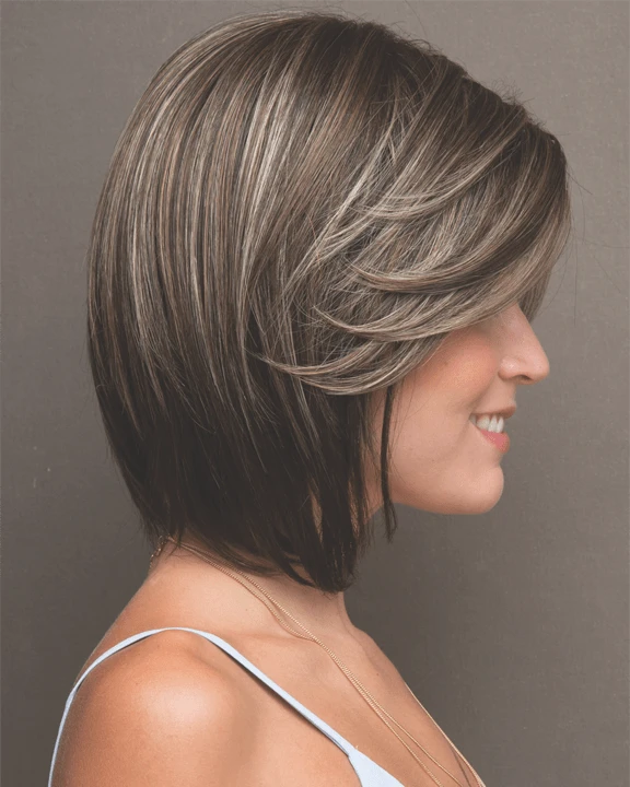 May by Noriko. Elegantly relaxed bob with a wispy perimeter and feathery swept sides.