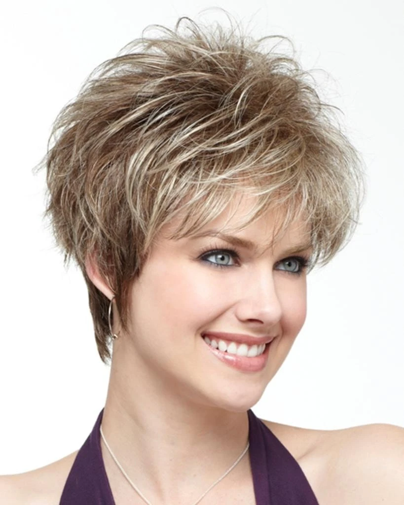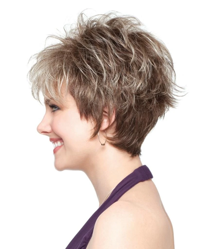 Roni by Noriko. Volumized, multi-layered texture with nape-hugging tapered edges.