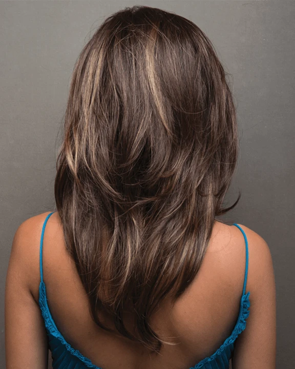 Janelle PM by Noriko is a long lush layered style with a hint of waves at the ends that falls below the shoulders. Noriko’s Janelle PM wigs feature a partial monofilament (PM) cap construction. The 100% hand-tied section allows for added multi-directional styling while creating the illusion of natural hair growth. Additional cap construction features include machine wefted sides, a flower net top with two way stretch from front to back, and a soft flower net nape and ear tabs with adjustable band that contours to the shape of the head. Janelle’s partial monofilament (PM) cap construction provides a cooler, all day wearing comfort.