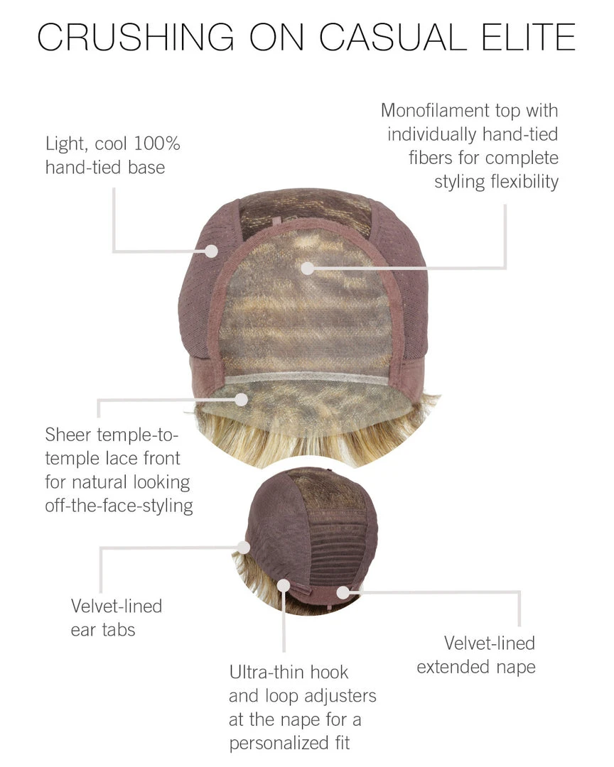 Crushing on Casual Elite by Raquel Welch. We’ve stoked the fire on your not-so-secret attraction, adding a 100% hand-tied capto really kick the romance into high gear. A low-density, even lighter weight look to fawn over with the same monofilament top you’ve come to love