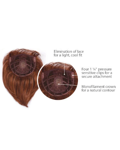 A handy hair addition, Faux Fringe by Raquel Welch offers fashionable bangs seamlessly, without the commitment of cutting your hair. Â It features a monofilament crown for a smooth, natural contour. Â This helpful top-of-head piece includes 4 pressure sensitive clips for an easy, comfortable and secure attachment. Â This piece is ideal for a bob hair style and can be worn with long, layered styles as well. Â It can also be customized for shorter cuts. Â Think of it as much more than just clip-in bangs… it’s fabulous faux fringe!