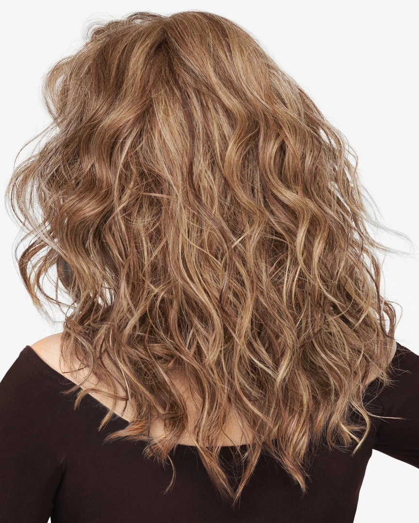 Power on with this long, layered look. The soft, casual beach wave texture is stylish enough for daywear and shifts into high gear glamour for evening. Temple to temple lace lets you style half up half down or pull into a low ponytail.a finger!