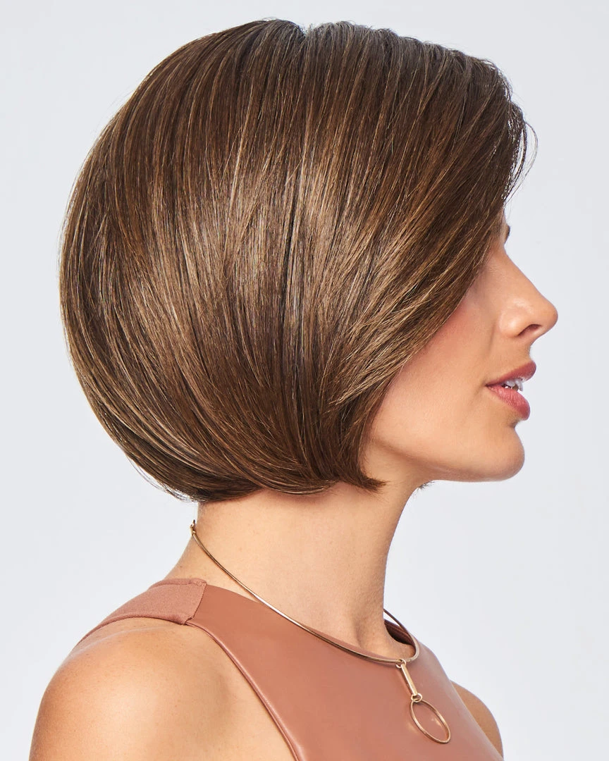 Meet the boldest bob of the bunch. Whether meeting up at the local café or stealing away for a secret soiree, this chic, jaw-length bob is always ready for the next adventure. A swingy cut with slightly layered ends for a softer look and enough length to tuck behind the ear. The full mono top gives you the styling flexibility you love, without any excess bulk.