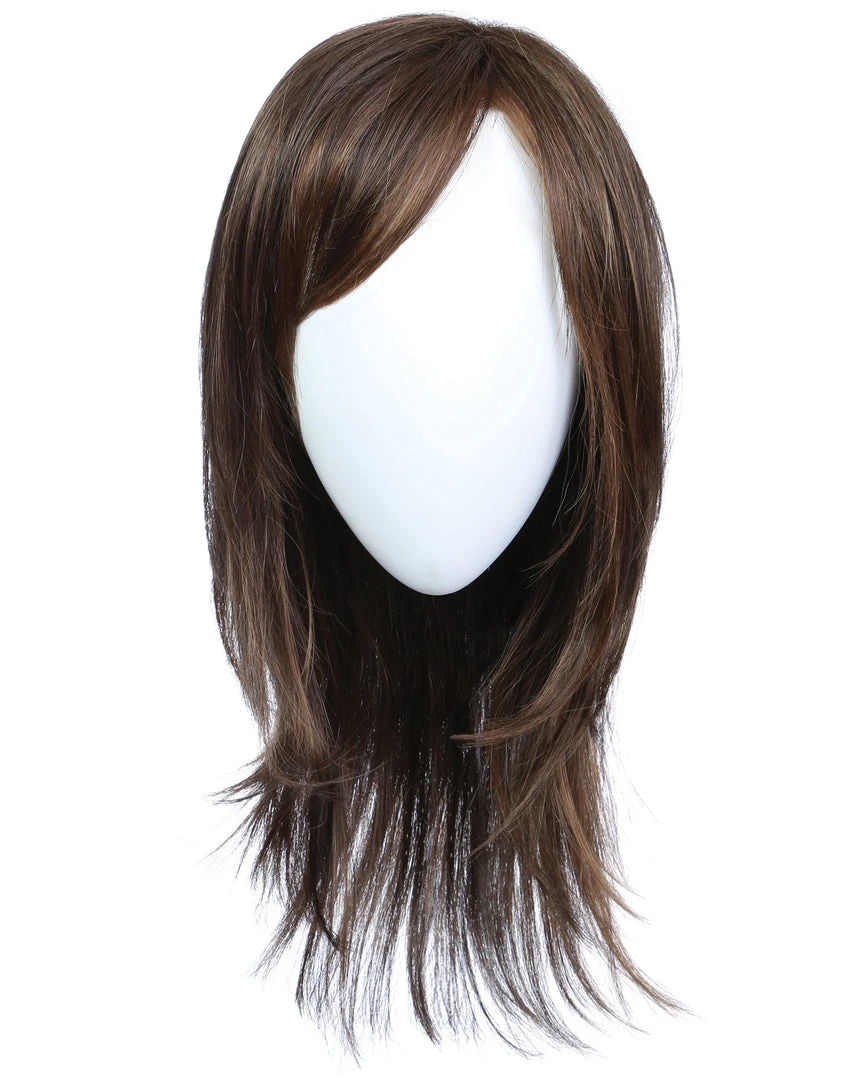 A straight long layered cut with optional side swept bangs, this feminine silhouette features a lace front for off the face styling and a Sheer Indulgence™ monofilament part for added parting options.