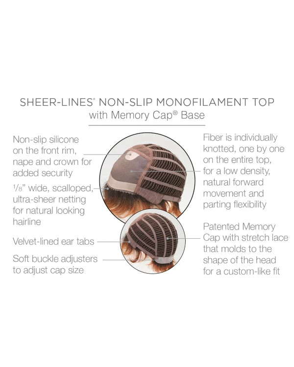 Free Spirit by Raquel Welch. This classic short with cut with the natural hairline of a Sheer Lines® front, the cool, light comfort of the Sheer Indulgenceâ„¢ Top and our new Non-Slip silicone construction, includes long softly waved layers on top and sides that beautifully blend into flipped, textured ends in the back.Â