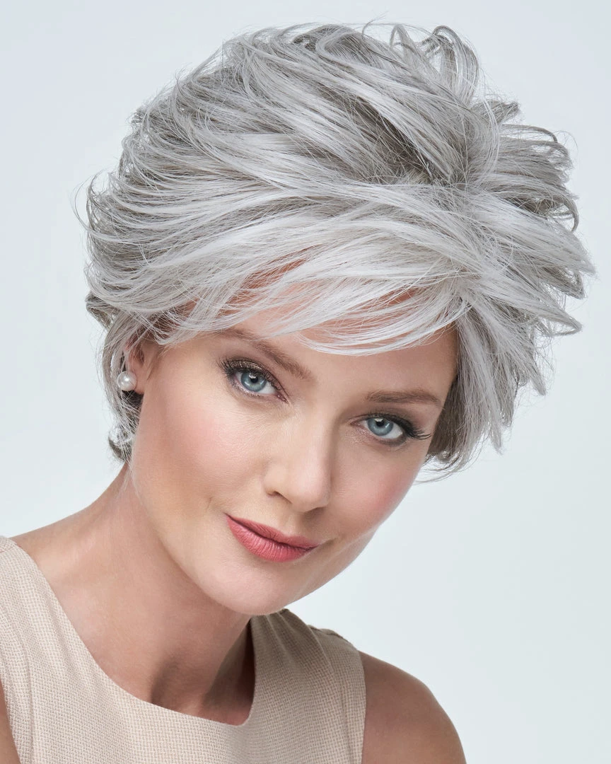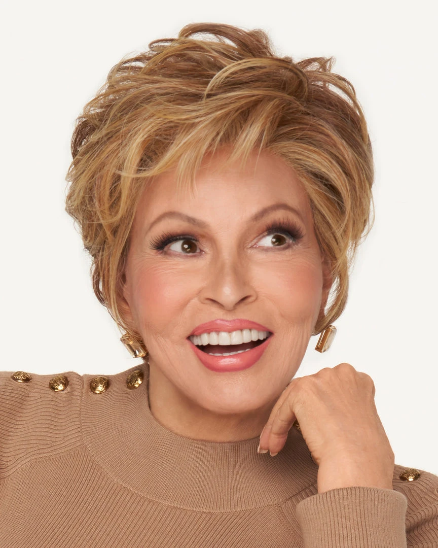 Ready for Takeoff by Raquel Welch. Taking short to the next level, this look is nothing short of sensational. A face-framing silhouette with a tumble of waves and a whisper of gentle bangs. High-impact, low-maintenance. What are you waiting for?