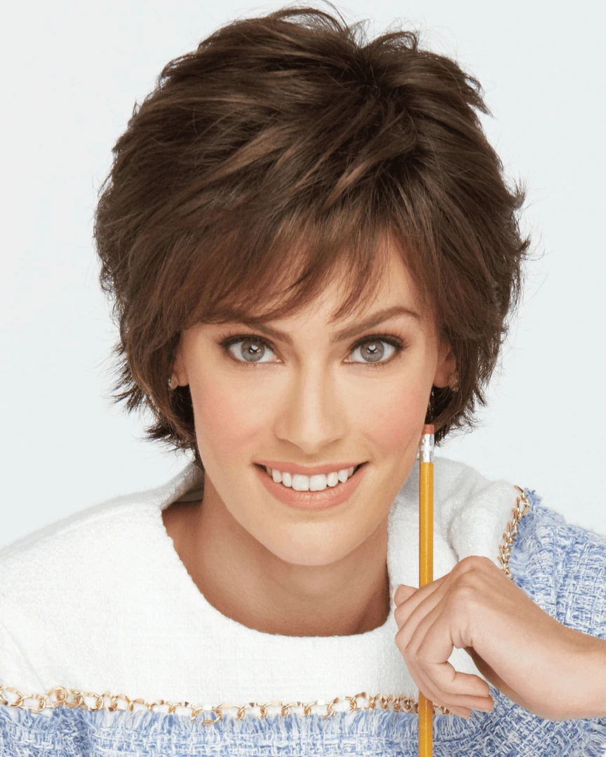 Voltage Elite by Raquel Welch. Offering the same short, barely waved, all over layered style as our top-selling Voltage wig, this stunning, no-fuss and versatile salon cut now includes a temple-to-temple lace front, monofilament top and hand-knotted base for the ultimate in light, cool comfort!