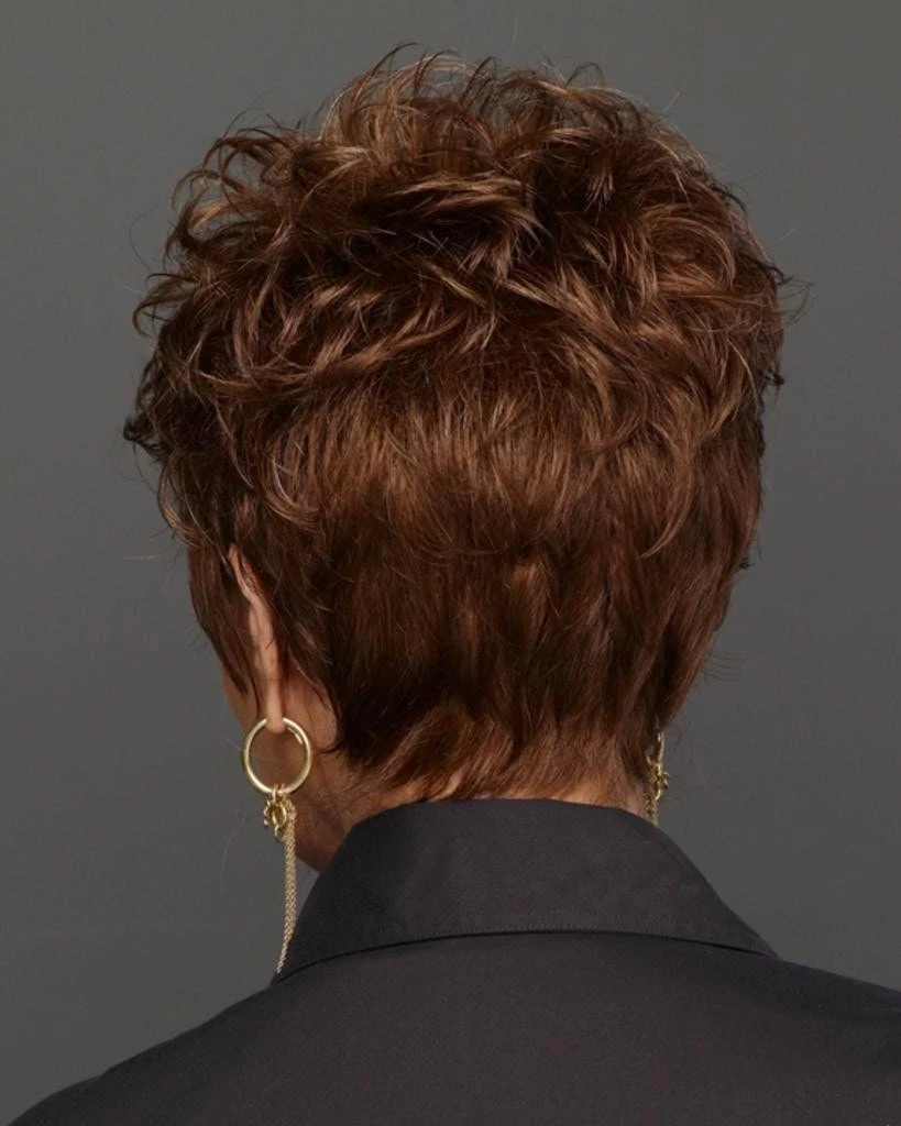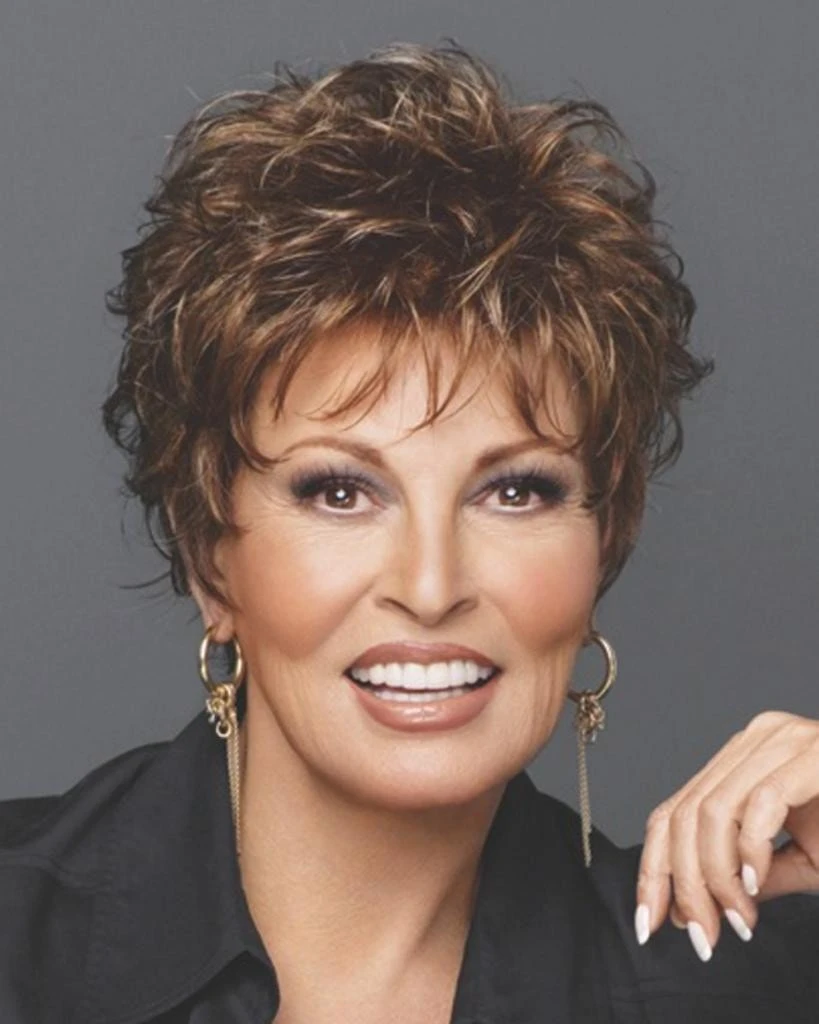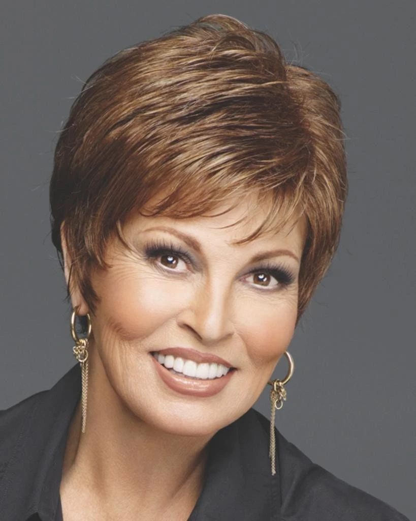 Whisper by Raquel Welch. A barely there boy cut with gently waved layers on top that blend to smooth sides and back. Only 1 ¾ ounces in weight, it’s as soft and light as a whisper!Â