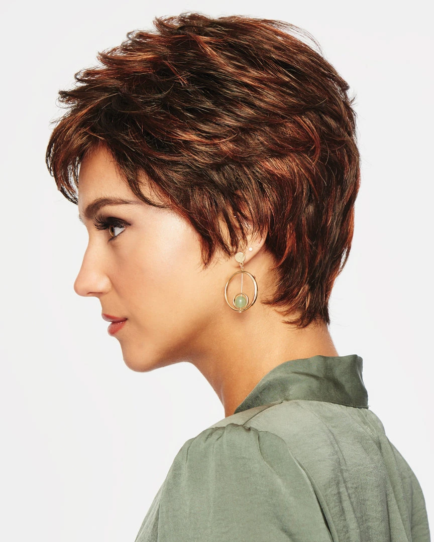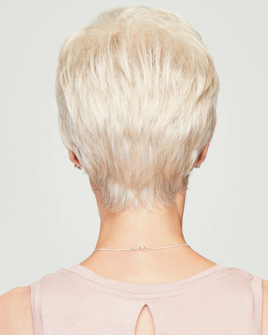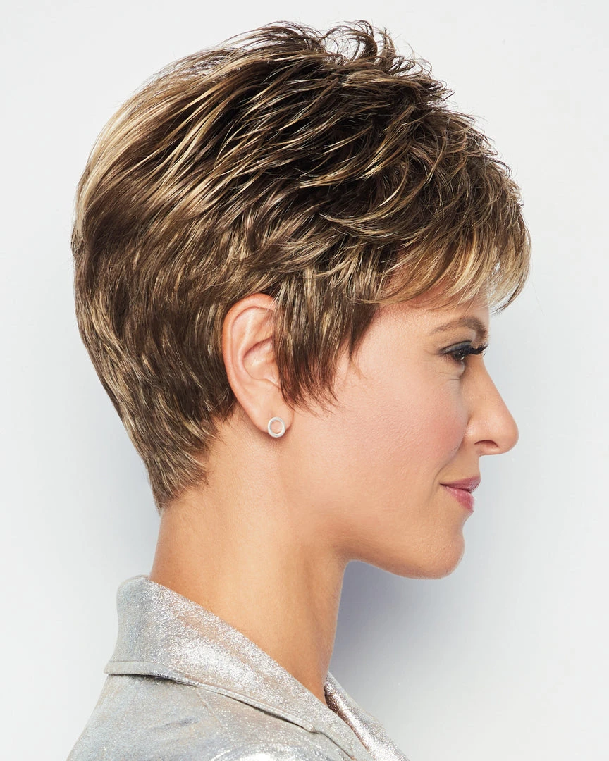 Winner by Raquel Welch. This light weight little pixie features razor-like tapering of barely waved layers. Ready to wear with a firm shake right out of the box, this short boy cut is as easy to style as it is comfortable to wear! Winner Raquel Welch Wig Pixie Boy Cut Vibralite