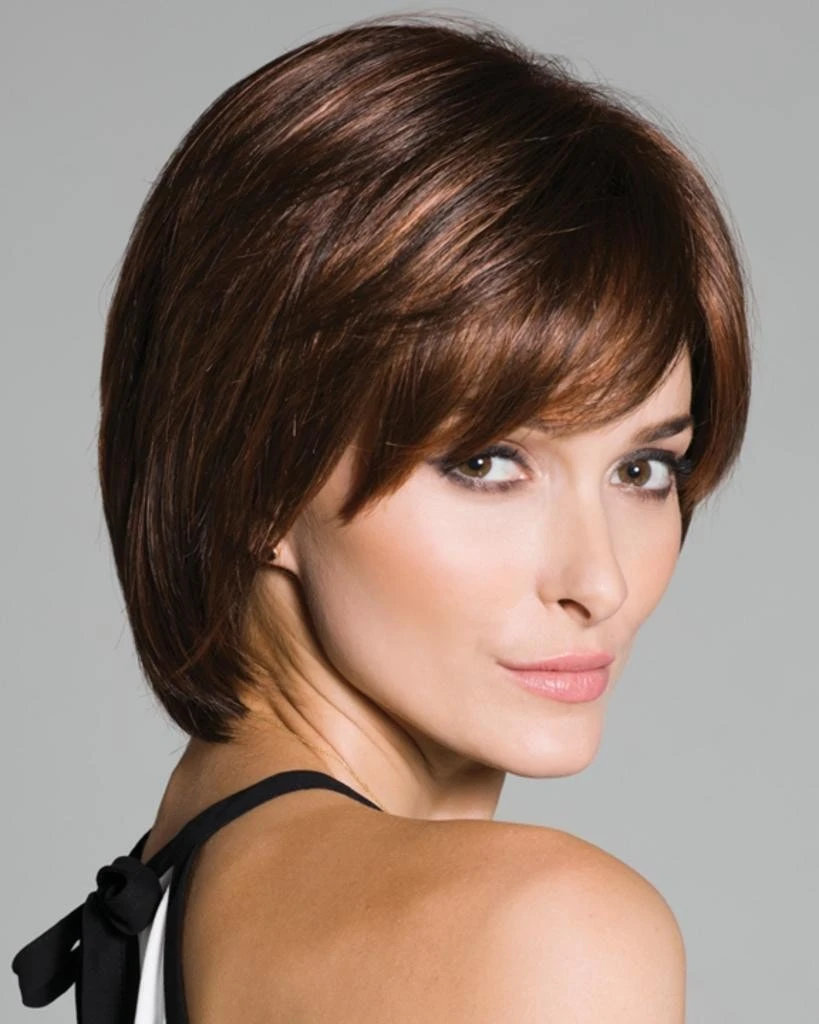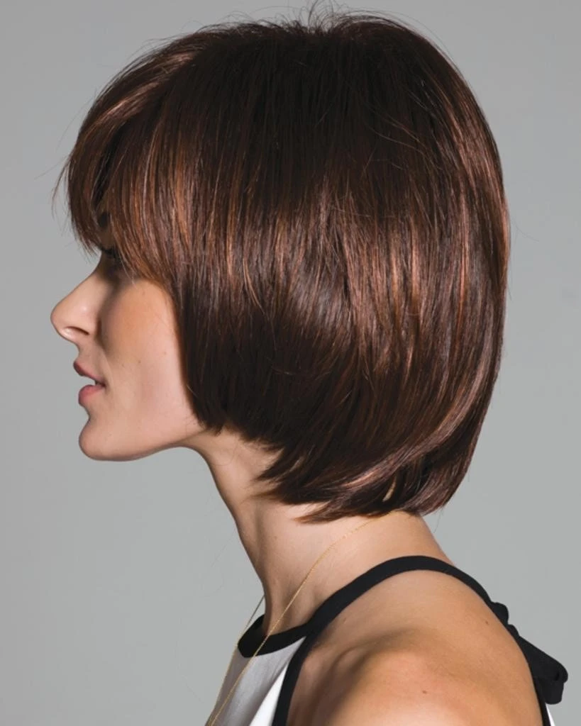 Shannon by Rene of Paris. A structured chin length bob with tapered ends. This straight ready-to-wear wig is a structured chin length bob with tapered ends. Shannon is machine made with adjustable tabs in the back nape area to allow a more comfortable fit. The result is a comfortable fit with a natural look that is both fashionable and easy to wear.