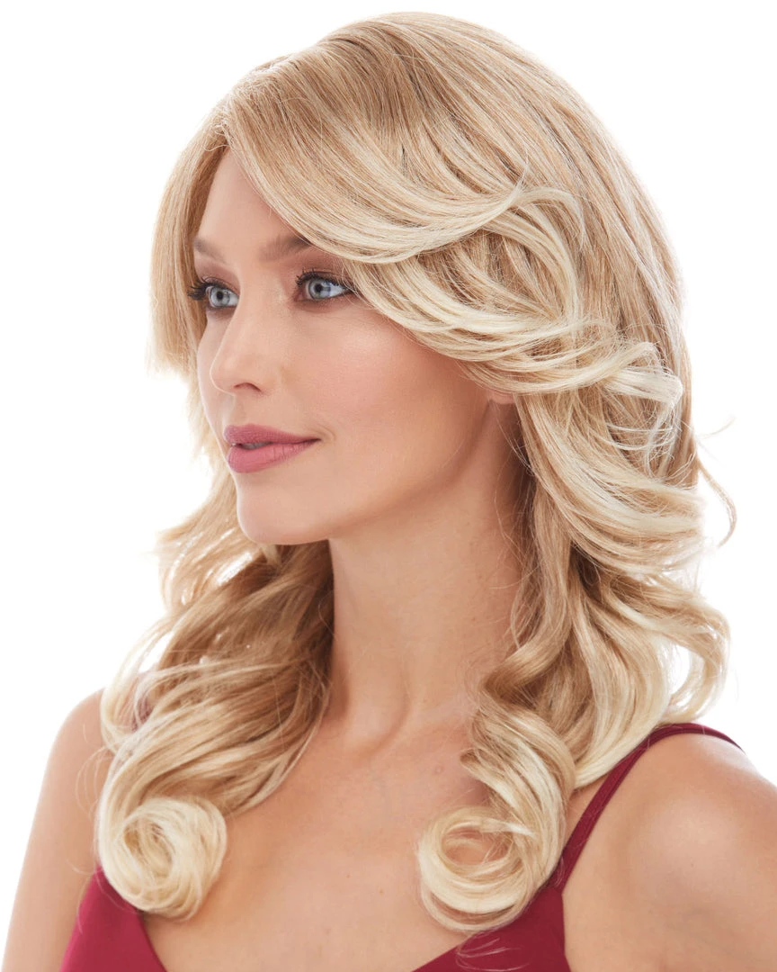 Bliss by Sepia has long spring curls with swoop bang.