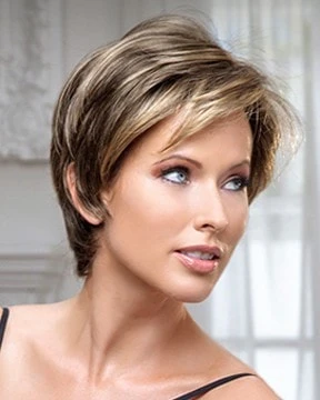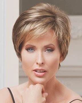 Lana by Tress Allure is a flirty, short, feminine style that frames the face with shimmering, delicate layers.