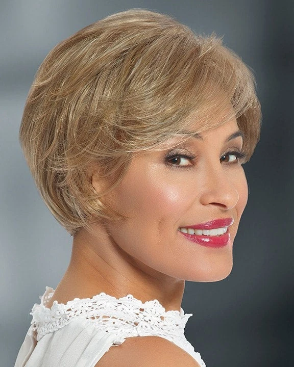 Trina by Tress Allure has soft bangs face framing layers, easy to style with plenty of volume.