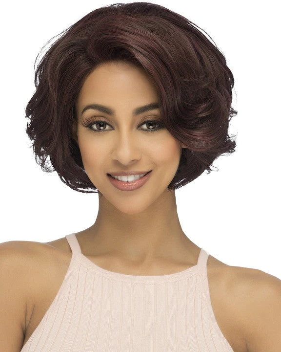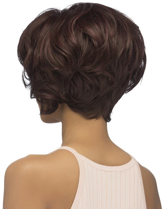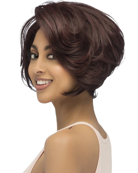 Carly by Vivica Fox is an 10 inch layered flipped out wrap style with free-parting.