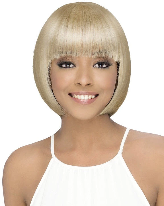 Danish by Vivica Fox is an 12 inch fringe ended bob with layered fringe bang. Professional and appropriate for work.