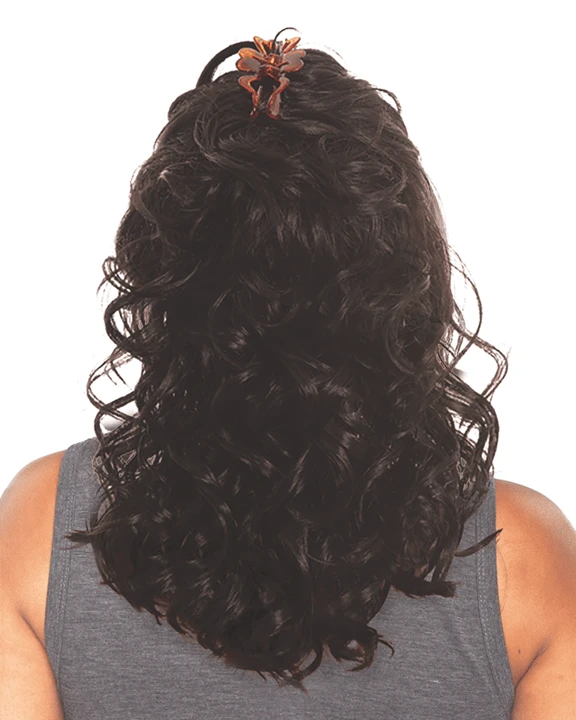 Joanna V by Vivica Fox is a 17 inch layered body curl style with pullback on sides with front loose pieces. Its high heat resistant fiber not only curls well, but also keeps the curl longer to keep the hair look beautiful. It is featured with Deeep lace front which will enhance the natural look of yours when you wear the wig. There are secure combs inside the wig for a tight and comfortable fit to stay in a desired position. It is one of Vivica’s best-selling wigs. This look never goes out of style!