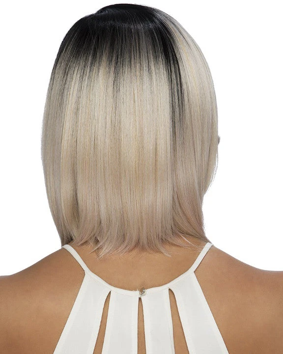 Klaret by Vivica Fox is an 14 inch layered straight ends and leyeres swept bang with invisible left side part.
