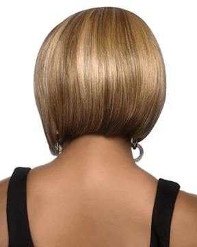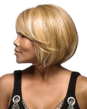 Leni V by Vivica Fox is a 10 inch classic bob style with feathered tips. Classic bob style with a swept bang makes it trendy and beautiful. It is delicately handmade with your comfort in mind. The entire cap is handtied on a light and airy mesh net that is breathable and feels natural. Hand-tied pure stretch cap stretches throughout the entire perimeter inside which gives you extra comfort for all day long without causing unwanted headache. New futura fiber helps keep the bob curl longer and bouncier.