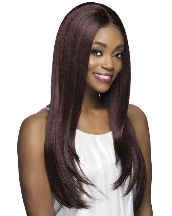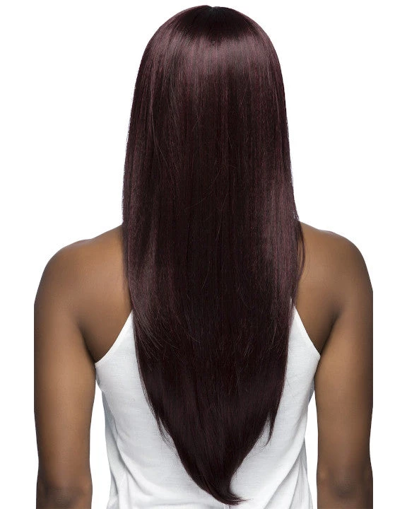 Manon by Vivica Fox is an 28 inch layered straight style with invisible center part. Kardasian style.