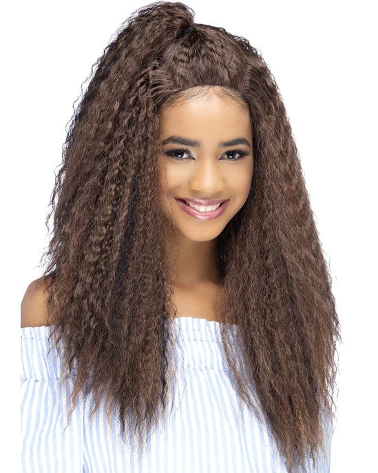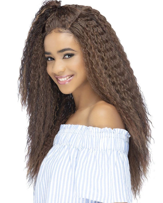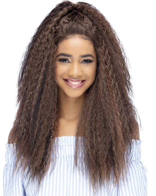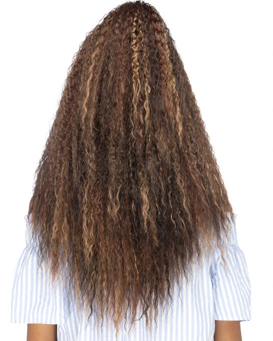 Manuka by Vivica Fox is an 24 inch layered water wave with top tied hair & invisible U part. Trendy half up, half down style.