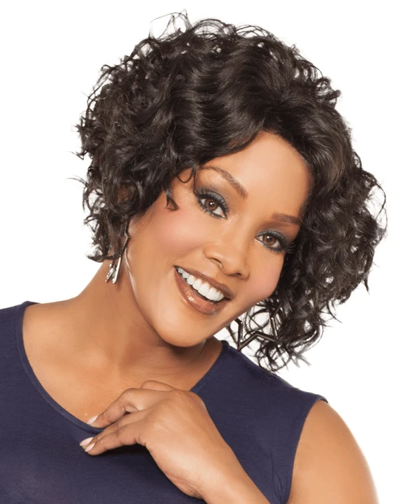 Megan V by Vivica Fox is a 10 inch angled spiral curl with long sides and natural baby hair in the front to enhance the natural look of it. Its high heat resistant fiber not only curls well, but also keeps the curl longer to keep the hair look beautiful. It is featured with lace front which will enhance the natural look of yours when you wear the wig.