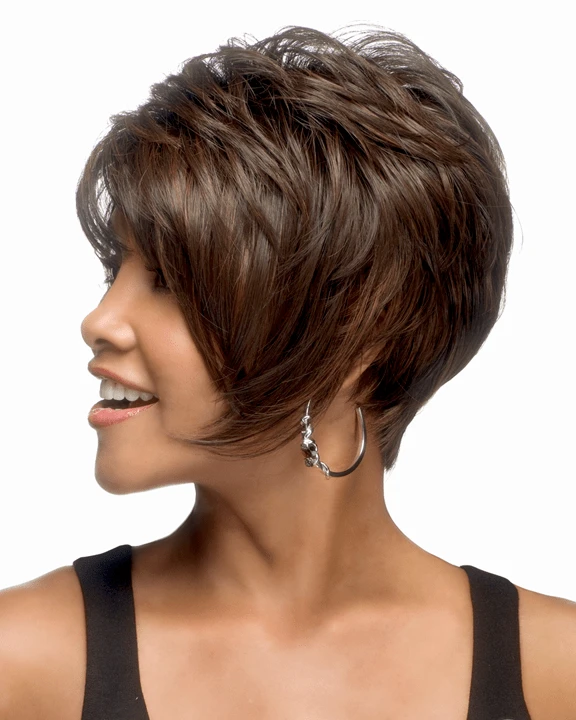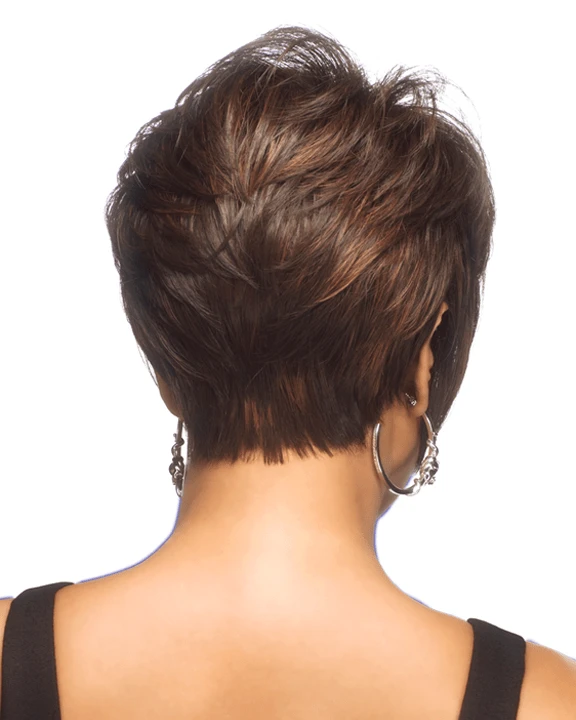 Moore V by Vivica Fox is an 8 inch pixie style with angle pointed sides. Pure stretch cap stretches throughout the entire perimeter inside which lets you wear it comfortably all day long without causing unwanted headache. Its high heat resistant fiber not only curls well, but also keeps the curl longer to keep the hair look beautiful.  Curling Iron Safe at 356 – 392 Degrees Fahrenheit