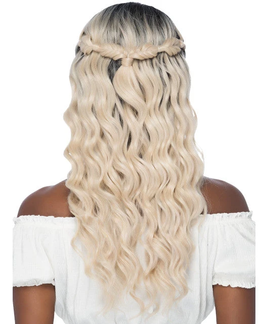 PW-3 by Vivica Fox is a 23 inch loose ripple deep wave with an invisible part, french braids & fishtail combo.