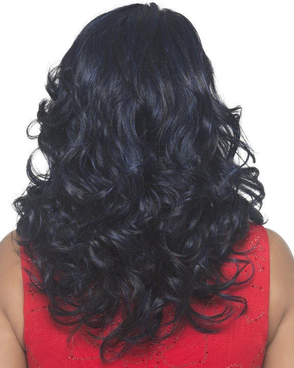 Silver V by Vivica Fox is an 18 inch layered style with roller set as a base, spiral curl on the side, and feathered bang in the front. Pure stretch cap stretches throughout the entire perimeter inside which lets you wear it comfortably all day without causing unwanted headache. Its roller set curl creates a mass of curly hair while spiral curls on the sides make it fun and versatile when it comes down to style. New futura fiber helps keep the curl longer and bouncier. Wherever you go, it is ready to rock and roll.Â