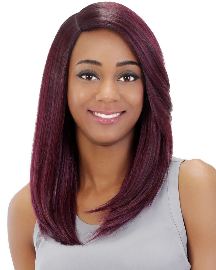 Athena by Vivica Fox is a 19 inch straight wig with fringed ends and a feathered bang. Our Pure Stretch cap stretches throughout the entire inside perimeter, allowing you to wear it comfortably all day without causing unwanted headaches. Yaki texture fiber looks and feels just like your own hair. Its high heat resistant fiber not only curls well, but also keeps the original curls longer to retain the hairstyle beautiful you chose.