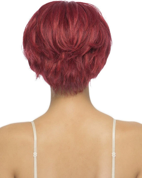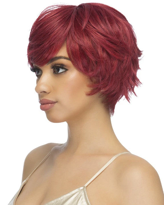 Cassandra by Vivica Fox is an short layered whipsy cut with bangs that is a fun, funky, trendy loose end bob.
