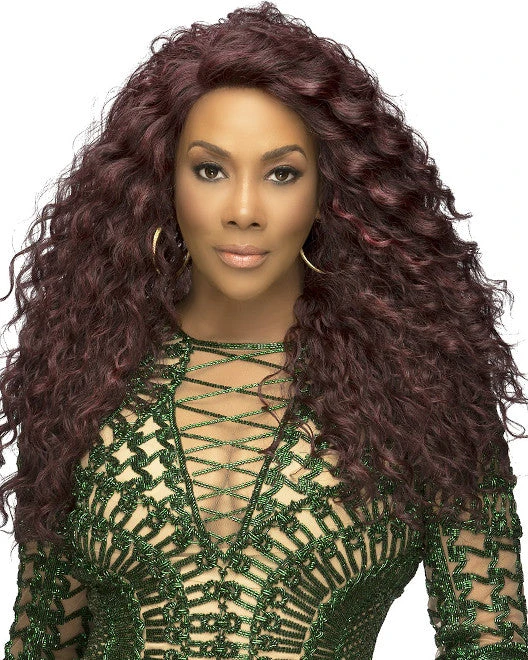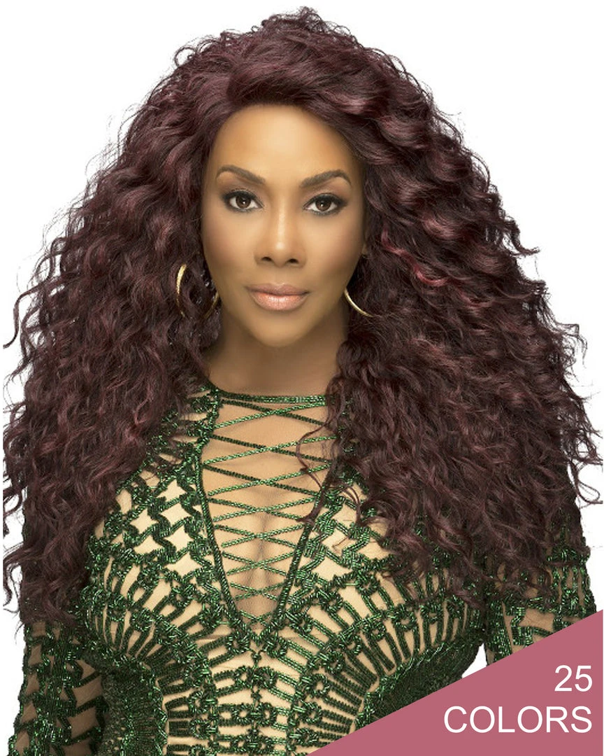 V by Vivica Fox is a 24 inch wig with layered deep waves and voluminous front. It is featured with a deep lace front that is twice as deep and wider than other lace fronts. It is also hand-stitched to enhance the natural look. Our durable swiss lace is very soft and delicate to your forehead skin and blends easily to your own skin color. Its high heat resistant fiber not only curls well, but also keeps the style longer to make the hair looking effortless.