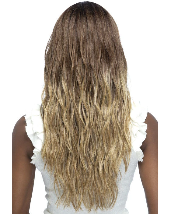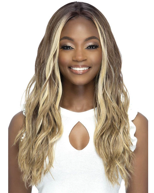 Yeriel by Vivica Fox is a 24 inch layered pieced loose curl with an invisible center part.